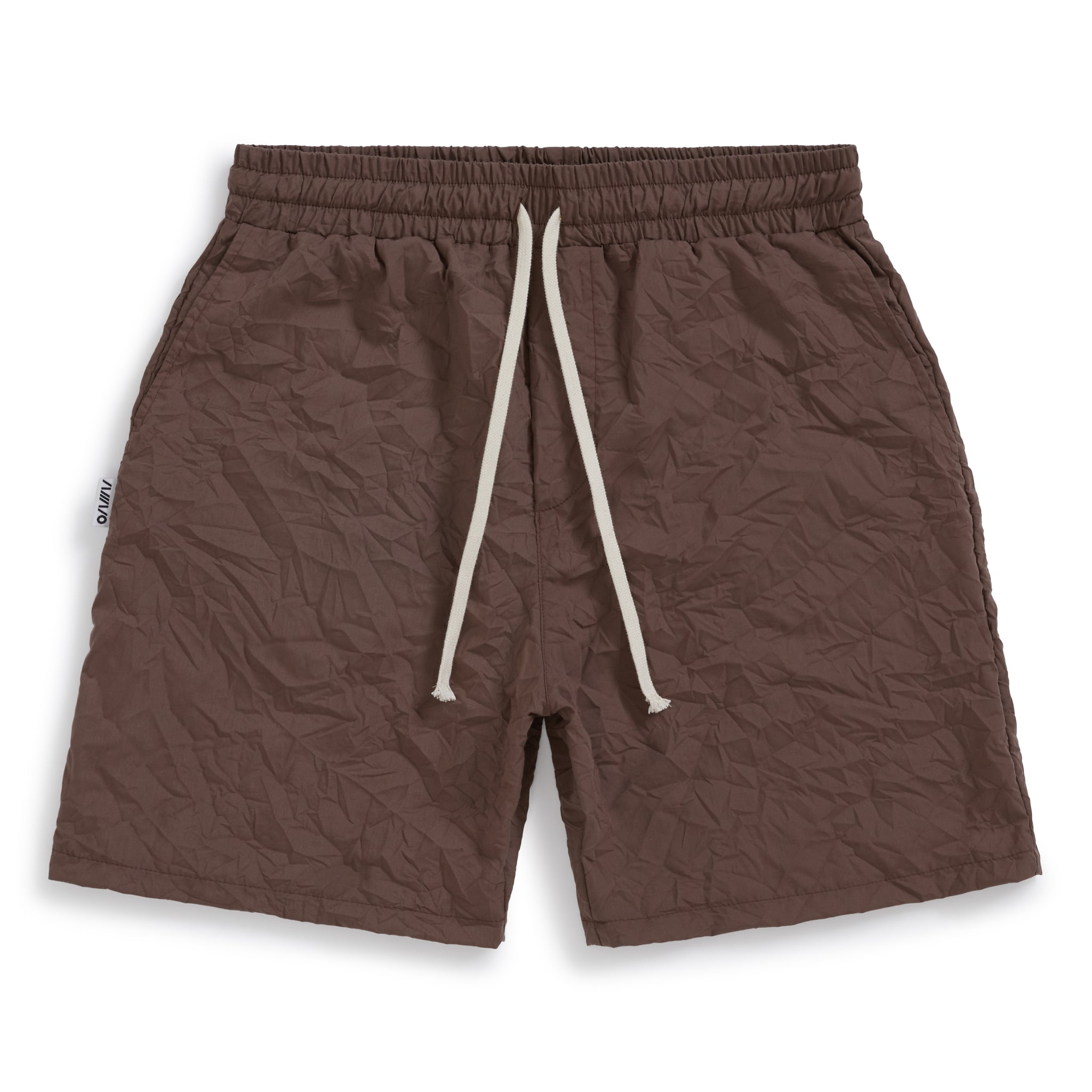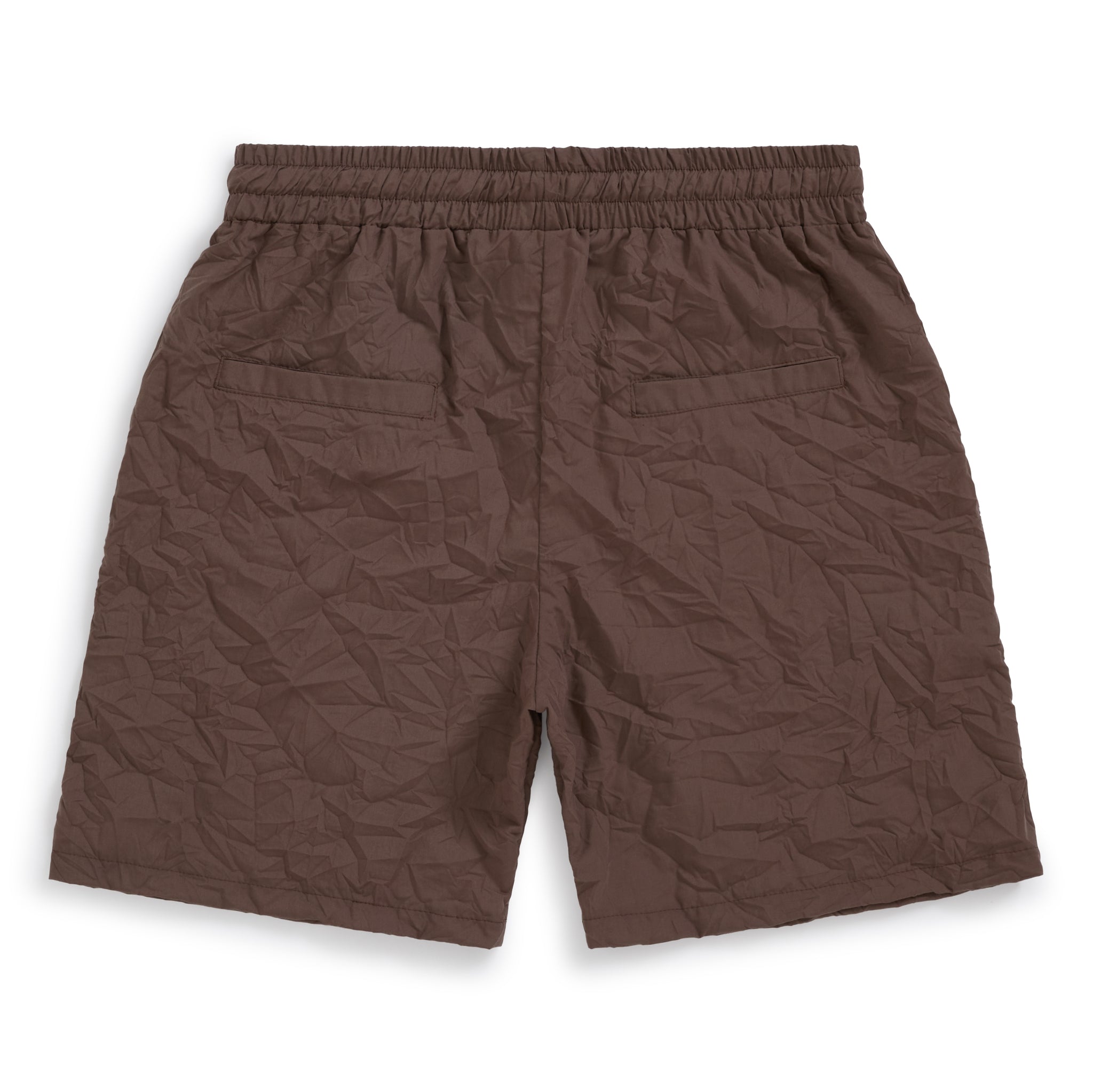 Cotton shorts in brown textured material with crinkle detailing.
